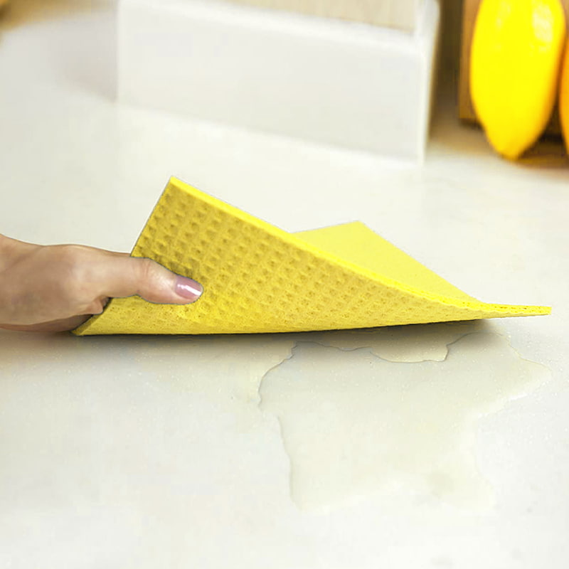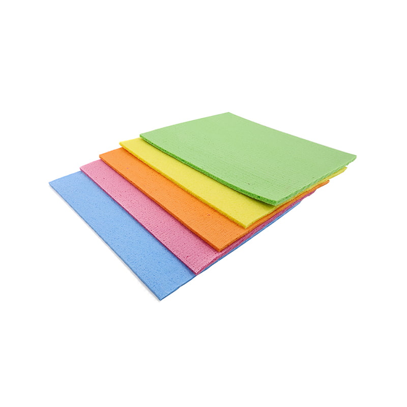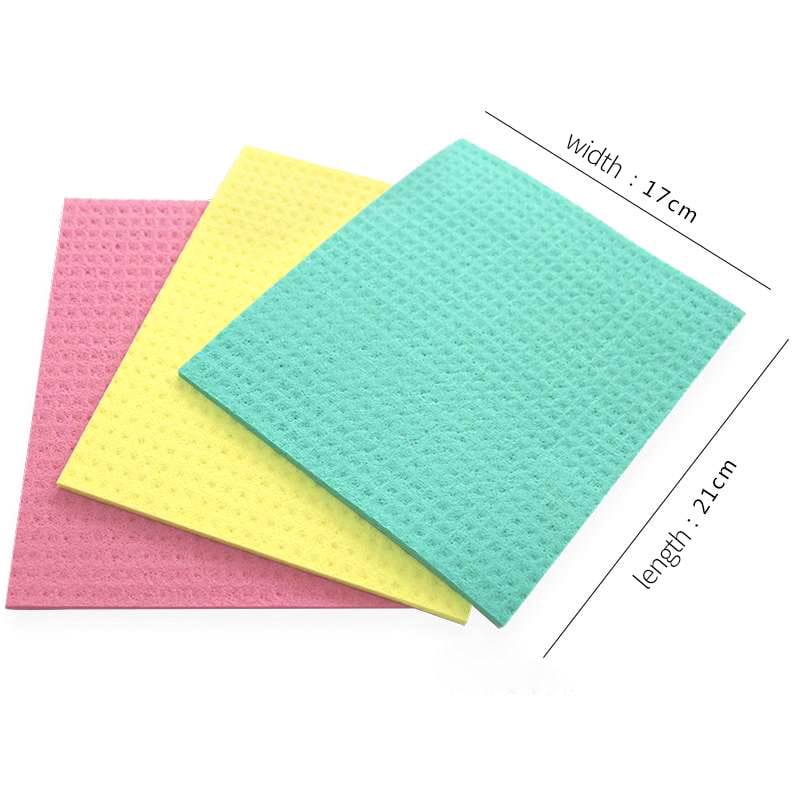 Gemakkelijk schoon te maken: Vergeleken met de poreuze structuur van traditionele sponzen, die gevoelig is voor vuil en roet, houden de katoenvezels van houtpulp minder snel vlekken en geuren vast.