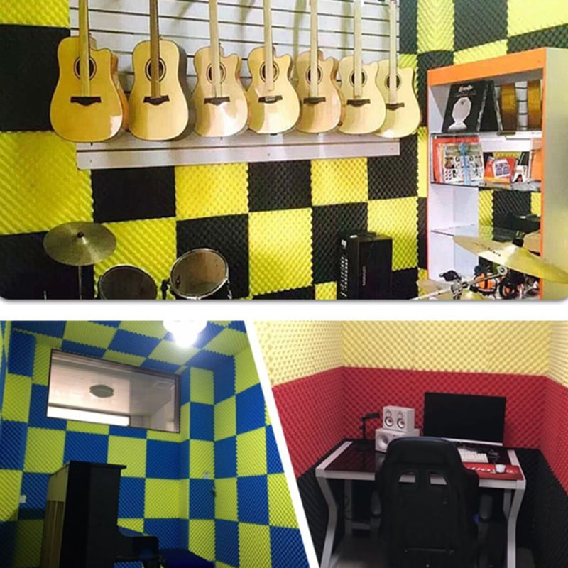 Thuis / Producten / Geluidsisolatiespons / Vlamvertragende en geluiddichte spons / Op maat gemaakt akoestisch geluidsisolatieschuim voor livestreamingruimte KTV Polyurethaan Piramide-ei Geluidsisolatieschuim Woondecoratie Geluidsabsorptiemateriaal