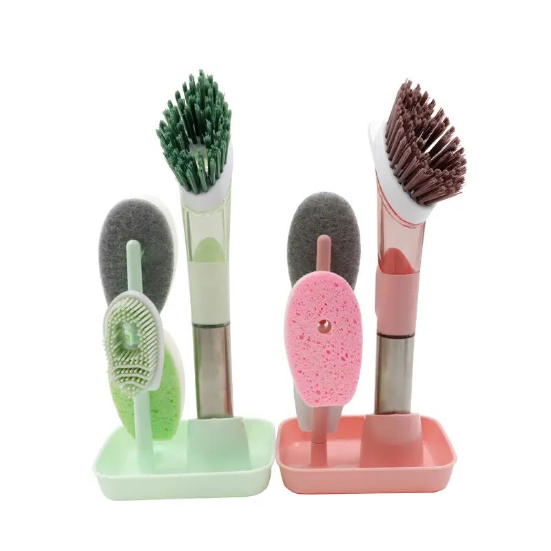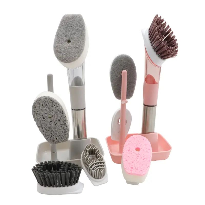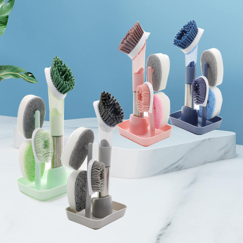 Het gebruiksmodel heeft de voordelen van een voortreffelijk ontwerp, vloeistofsproeifunctie, eenvoudige bediening, handig gebruik, goed reinigend effect, hoge reinigingsefficiëntie en meerdere functies, en schoonmaakwerkzaamheden onder verschillende omstandigheden. Het gebruiksmodel heeft betrekking op een multifunctionele vloeistoftoevoegende reinigingsborstel, die een handvatvormige schaal omvat en wordt gekenmerkt doordat de schaalkop is verbonden met een reinigingsborstelkop, het binnenste deel van de schaal een integrale vloeistofopslagtank is en de schaal is voorzien van een vloeistofsproeiende eucalyptusknop, de spuitknop is verbonden met een zelfaanzuigende pomp in de vloeistofopslagtank, en de zelfaanzuigende pomp is verbonden met een mondstuk dat zich uit de schaal uitstrekt. Het gebruiksmodel wordt gekenmerkt doordat aan het uiteinde van de schaalbehuizing een afdichtingsdeksel is aangebracht, een waterdichte afdichtingspakking is aangebracht tussen de schaal en het afdichtingsdeksel, een vloeistofaanzuigleiding is aangebracht op de zelfaanzuigende pomp en de bodem van de opslagtank voor droge vloeistoffen zich aan het einde van de vloeistofaanzuigleiding bevindt.